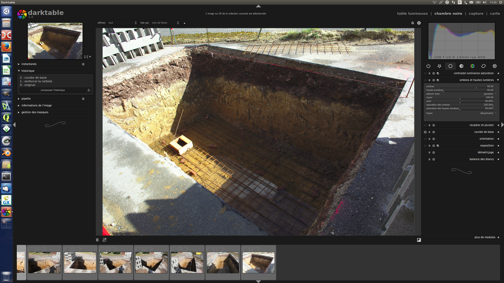 – une séance de prises de vue sur site qui se focalise sur le volume à mesurer, en l’occurrence ici une excavation dans le sol.